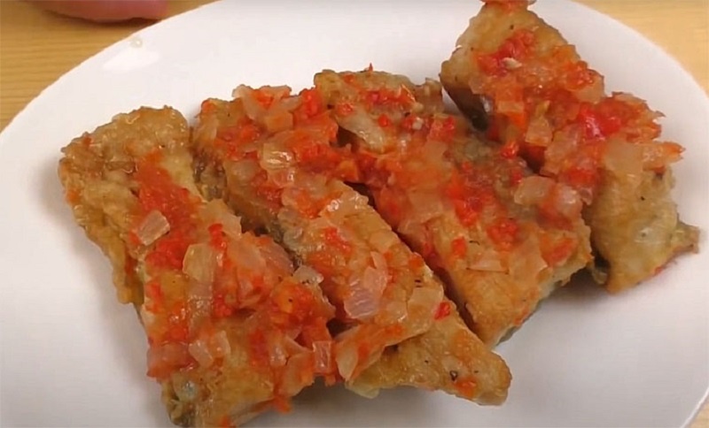 Обжарьте лук, пробейте помидоры с болгарским перцем в пюре и потушите 3–5 минут. Соус подаёт контраст: влажность и кислотность подчёркивают хруст корочки и нейтральность рыбы. В обычной жизни это тот самый штрих, что делает блюдо «не будничным».