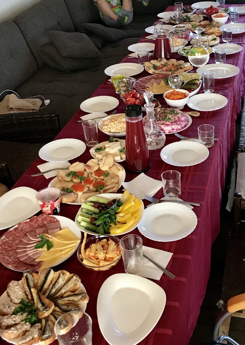 Несмотря на нехватку времени, стола удалось накрыть за 2,5 часа. Каждый близкий человек отозвался на помощь, что значительно облегчило задачу. Главное при таком подходе — это сохранить атмосферу радости, которую и старались создать.