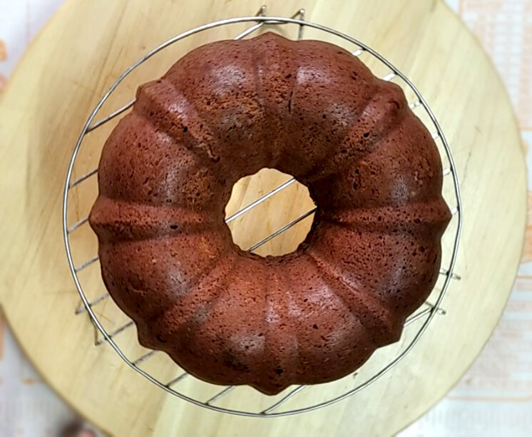 8. После выпекания оставить кекс остывать, затем польем его глазурью и украшаем измельченными грецкими орехами.