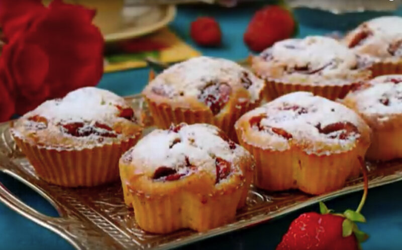 С приходом мая, когда лето уже чувствуется в воздухе, на рынках начинают появляться свежие волшебные клубники. В этот теплый сезон нет ничего удивительного в том, что клубничные десерты становятся настоящим хитом. На этот раз предлагается испечь легкие и ароматные кексы, где встречаются орехи и клубника!