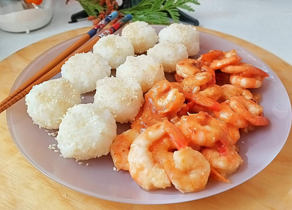Это блюдо удивляет своей необычностью и ярким вкусом, при этом его приготовление не займет много времени. Восхитительное сочетание креветок и рисовых шариков станет настоящим украшением вашего стола.