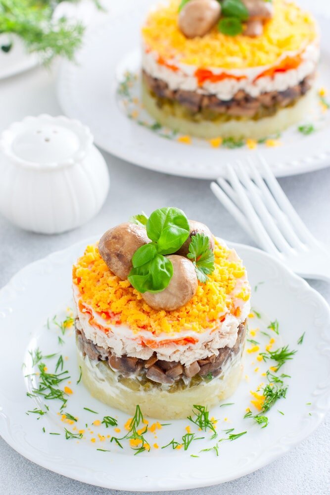Представляем оригинальный рецепт слоеного салата с жареными грибами, который покорил сердца многих гурманов. Эта аппетитная закуска идеально подойдет как для повседневного стола, так и для праздничного угощения!
