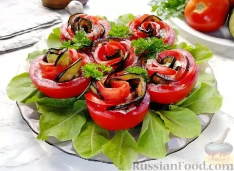 Вдохновитесь этими рецептами и создайте настоящие кулинарные шедевры на основе простых продуктов. Закуска из помидоров, баклажанов и сливочного сыра, оформленная в виде розочек, станет настоящим украшением любого стола.