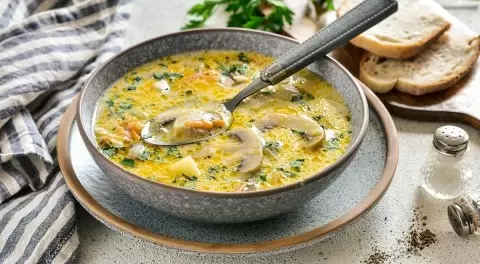 Грибной суп не только вкусен, но и полезен: он богат растительным белком и витаминами группы B, а плавленый сыр добавляет кальция. Этот суп можно легко готовить, и он отлично согревает, становясь любимым зимним блюдом.