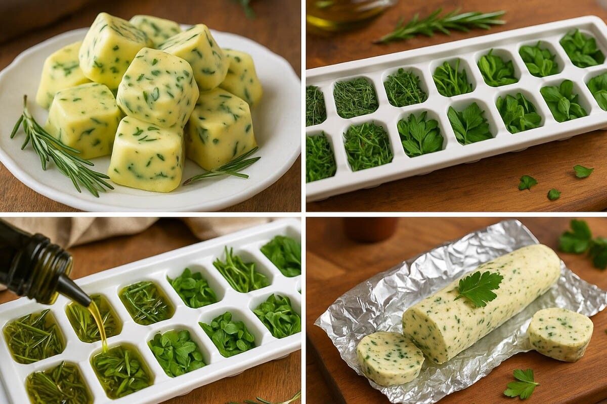 После нескольких часов в морозильной камере получаются симпатичные кубики, готовые добавить яркий вкус к любому блюду. Сочетание свежих трав с маслом позволяет сохранить все их ароматы, предотвращая превращение в безвкусную массу.