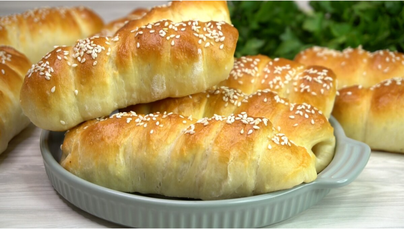 После того как тесто готово, его накрывают пленкой и оставляют подниматься на полтора часа. Когда тесто увеличится в объеме, пора формировать сосиски. Тесто следует раскатать в прямоугольник и нарезать на полоски. Каждую сосиску обернуть в тесто, срезать лишнее и заклеить края. Затем выкладываем на противень, смазываем яйцом и при желании посыпаем кунжутом. Выпекаем при температуре 180 градусов от 20 до 25 минут.