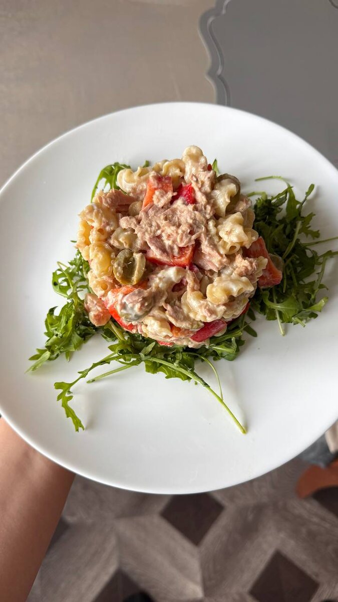 Этот салат-паста с тунцом будет отличным выбором как для обеда, так и для ужина. Подавайте блюдо с свежей рукколой для дополнительной свежести и аромата!