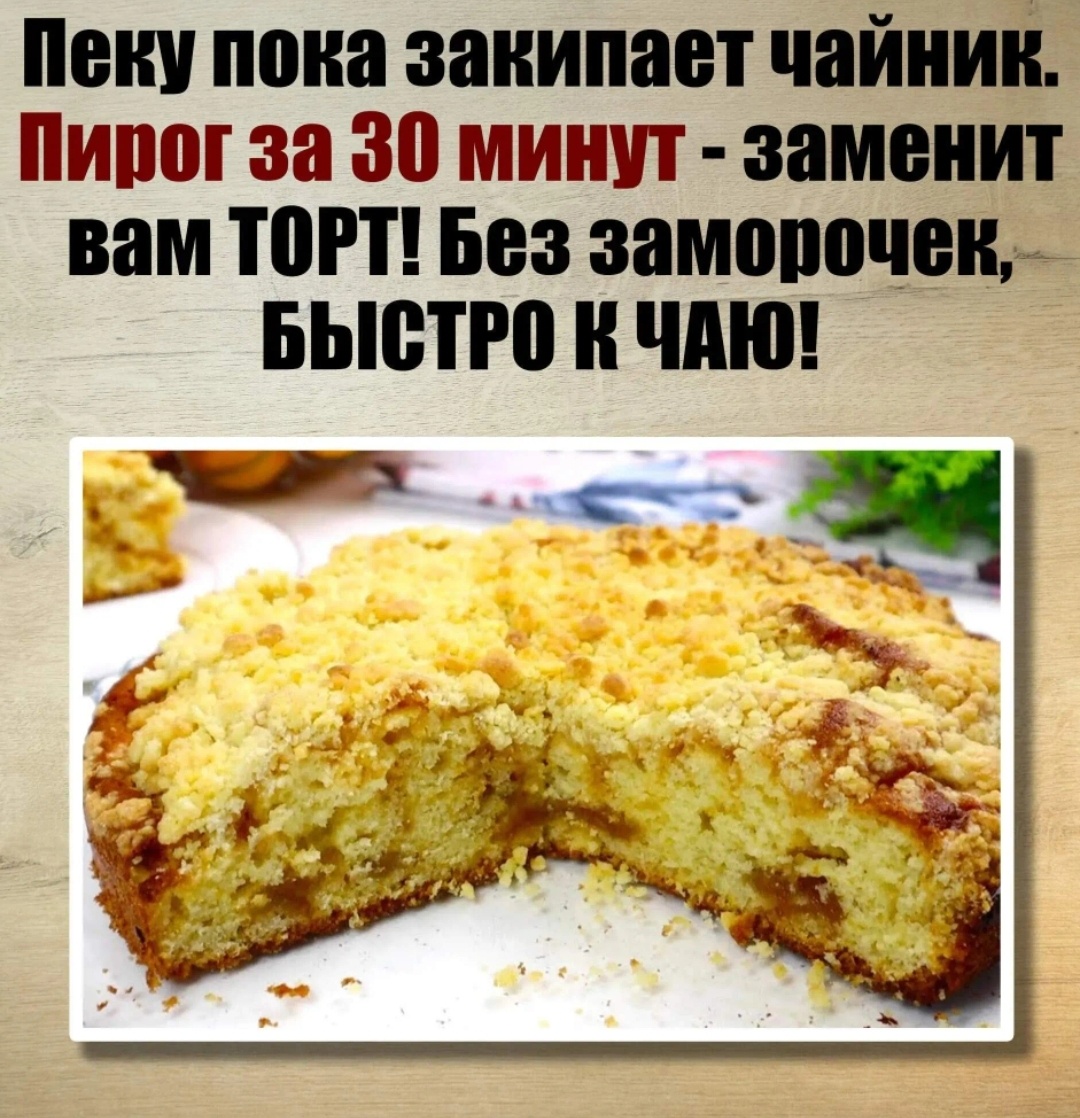 Сегодня представляем рецепт простого и быстрого пирога, который идеально дополнит ваш вечерний чай. Этот десерт порадует вас своей хрустящей корочкой и нежной, сочной начинкой, а что самое приятное — для его приготовления не потребуется миксер.