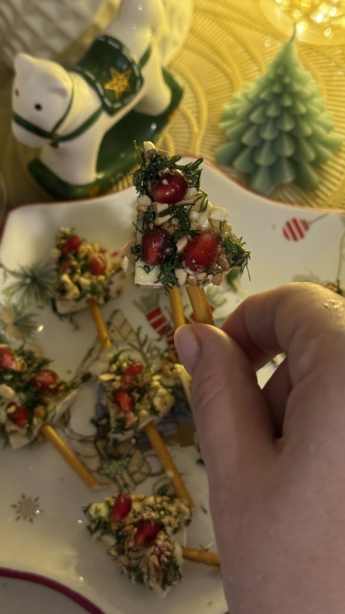 Эти хрустящие, сливочно-сырные «ёлочки» с легкой сладостью меда и кислинкой граната идеально подойдут для новогодней ночи!
