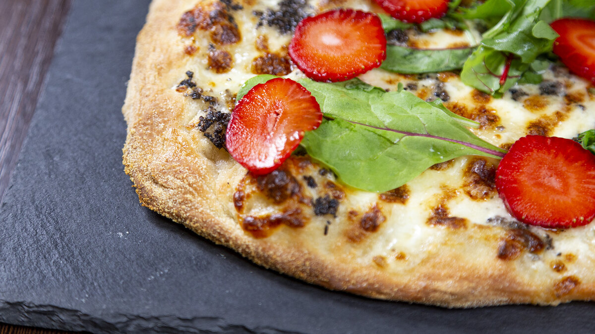 Подготовьте себя к настоящему гастрономическому удовольствию. Клубника в сочетании с сыром страчателла и трюфельной сальсой создаёт изысканное и яркое сочетание, которое выделяет это блюдо на фоне привычных пицц. Каждый укус наполняет яркими ягодными нотками, что придаёт пище уникальность и свежесть.