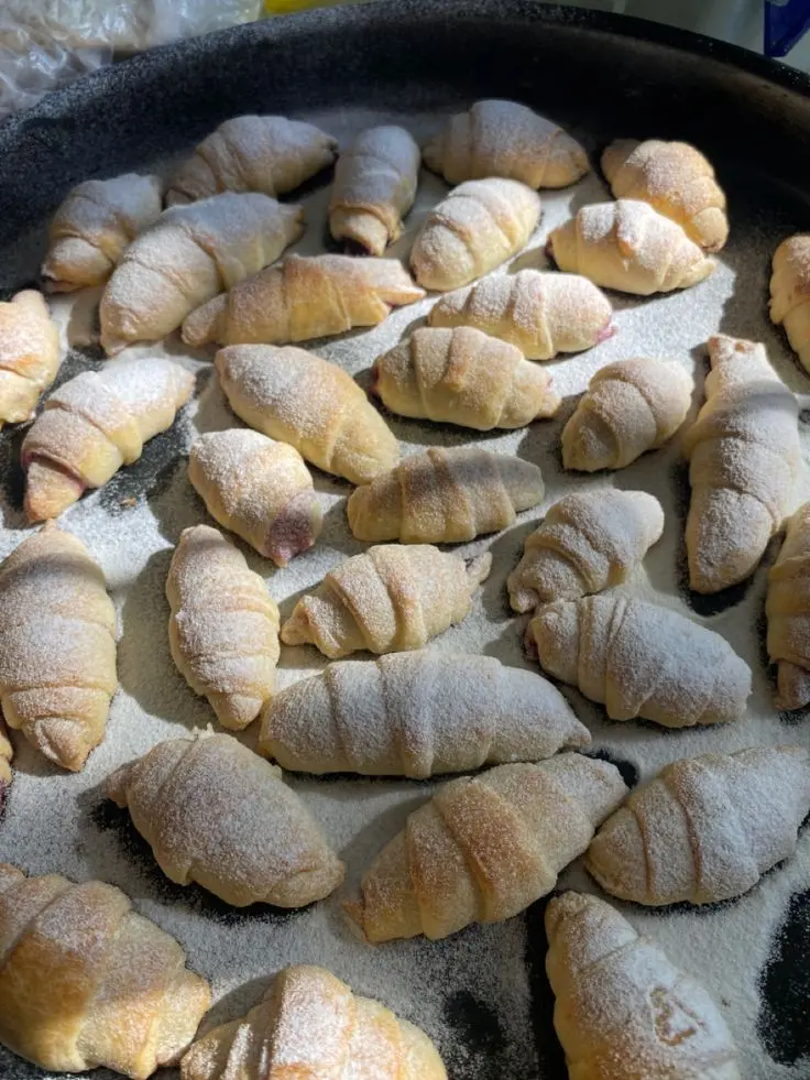 Эти рогалики — настоящая находка для любителей вкусной и простой выпечки. Их можно наполнить чем угодно: от любимого джема и варенья до творога с изюмом, тертых яблок с корицей или даже вареной сгущенки. Подходит также сыр, что придаёт интересный вкус!