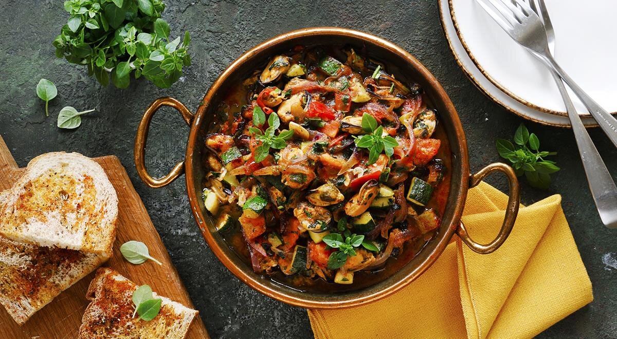 Для достижения наилучшего вкуса рекомендуется следовать пошаговой инструкции. Сначала разогрейте сковороду с оливковым маслом, на котором слегка обжарьте нарезанные лук и чеснок. Затем добавьте нарезанные кабачки и продолжайте готовить еще несколько минут. Далее введите помидоры и мидии, тщательно перемешивая, чтобы все ингредиенты приобрели общий вкус. Приправьте паприкой, солью и перцем, а за несколько минут до окончания готовки добавьте свежую зелень.