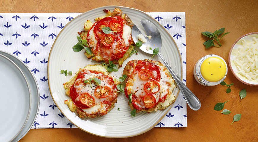 Картофельный гид для гурманов: желательно выбирать сорта, предназначенные для запекания, так как они остаются рассыпчатыми и отлично впитывают ароматный соус. Начинку для этой оригинальной "пиццетты" можно адаптировать на любой вкус, добавляя любимые мясные деликатесы, грибы или различные сыры.