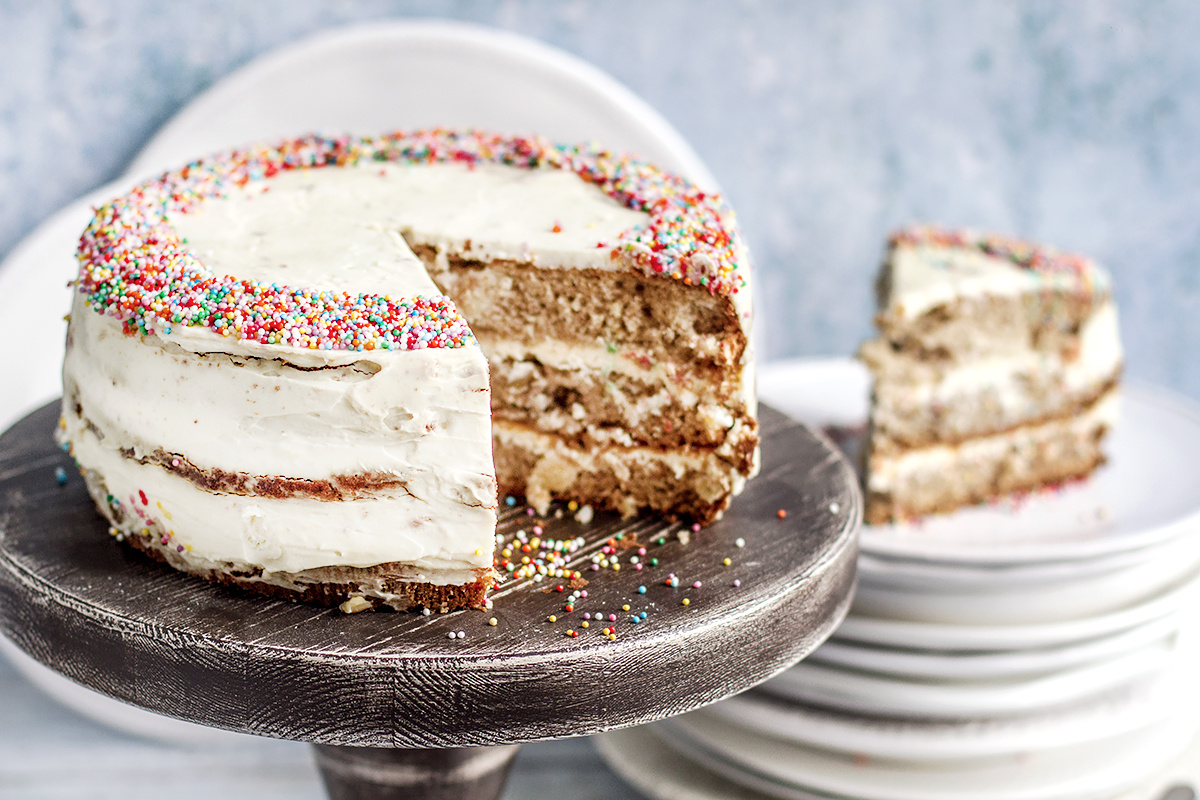 Шаг 5: Соберите торт, нанеся крем между коржами. Украсить торт можно оставшиеся кремом или просто посыпкой. Дайте ему настояться в холодильнике на 3-4 часа, но лучше на ночь.