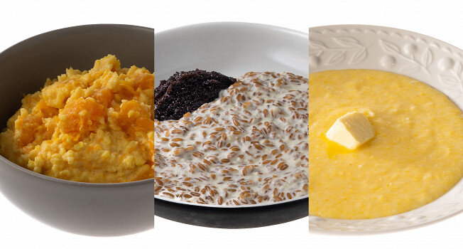 В данном материале представлены различные варианты каш: овсянка, кукурузная, пшеничная, перловая, гурьевская каша на основе манки и молочная каша с полбой. Предлагаются как сладкие, так и несладкие варианты. В ближайшее время планируется выпустить новый материал с молочными кашами в ресторанном стиле, где рецепты будут ещё более изысканными и увлекательными.