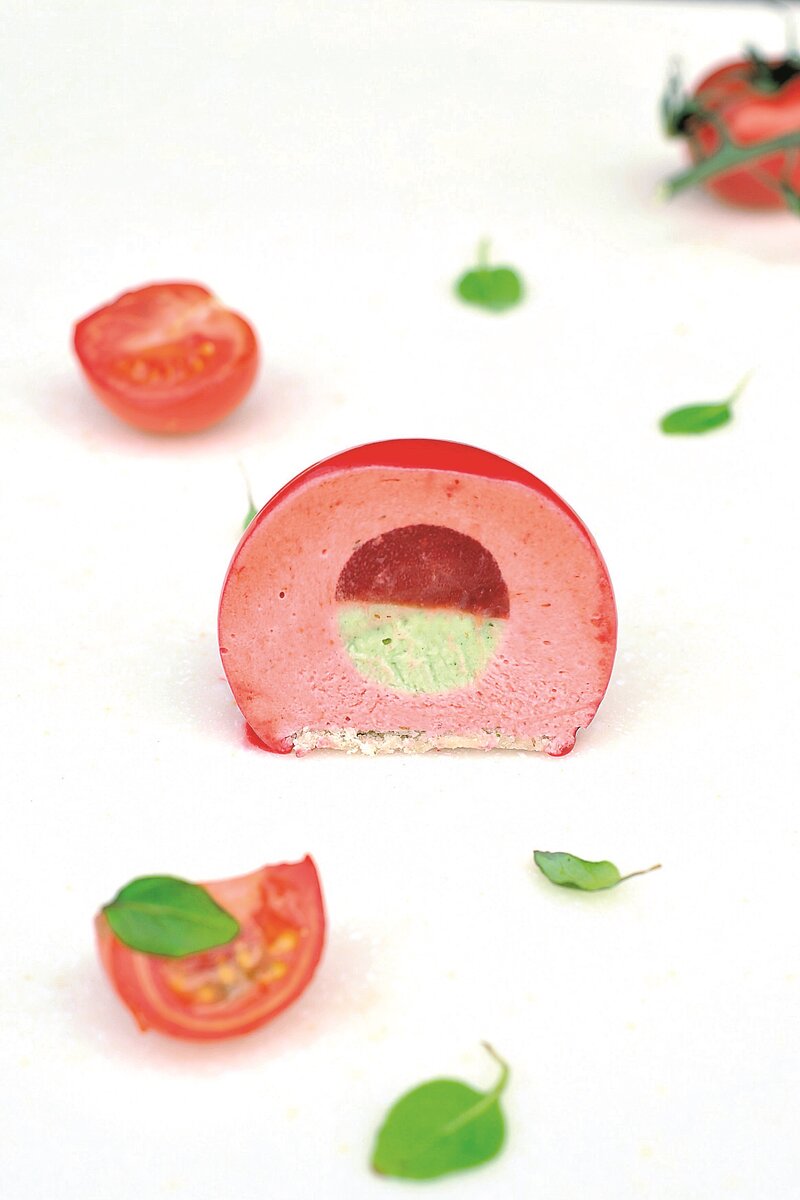 После сборки пирожных, результаты порадуют своим оригинальным вкусом и ярким оформлением. Подавать их стоит охлажденными, чтобы оценить все тонкости сочетаемого вкуса клубники, томата и базилика.