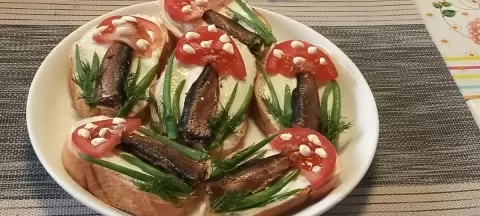Ищете оригинальный способ подать закуску на праздник? Бутерброды со шпротами, оформленные в виде мухоморов, станут настоящим украшением стола. Это простой, но эффектный рецепт, который не потребует много времени — всего 30 минут на подготовку!