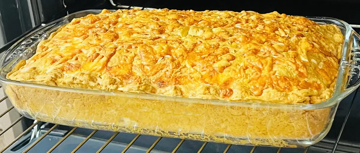 Поставьте пирог в разогретую до 180 градусов духовку и выпекайте в течение 30-35 минут. В результате получиться невероятно нежная выпечка, которая идеально подойдет как для обеда, так и для ужина. Приятного аппетита!