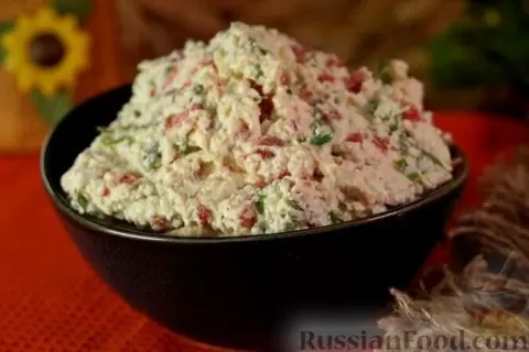 - Салат-намазка с болгарским перцем, брынзой и творогом: Идеальный вариант для закуски. Легкий, но с насыщенным вкусом, этот салат отлично подходит для подачи с хлебом или лепешками.