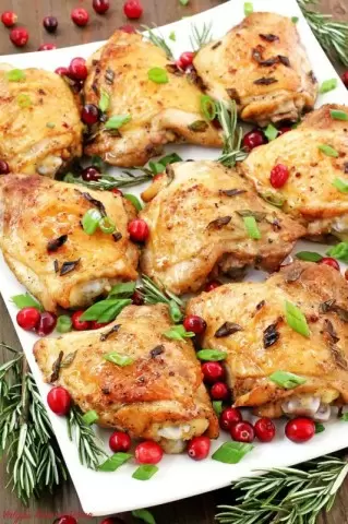 Когда курица готова, дайте ей немного отдохнуть перед тем, как подавать. Это поможет сохранить сочность. Подавайте курицу с овощами, рисом или макаронами. Украсив блюдо свежей клюквой, зеленым луком и веточками розмарина, можно создать гастрономическое волшебство прямо у себя на кухне. Это не просто просто блюдо, а настоящий праздник для вкусов!