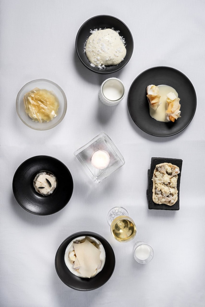 Солёные белые грузди встречаются ледяным грибом и хрустящим ягелем; кедровые орехи и жареный лук-порей создают ощущение тихого покрова, словно снежное покрытие укрывает поля и хранит озимые. В этом слиянии простых компонентов прослеживается мысль о сохранности природы через кухню — не агрессивно, а как плавное напоминание о циклах.