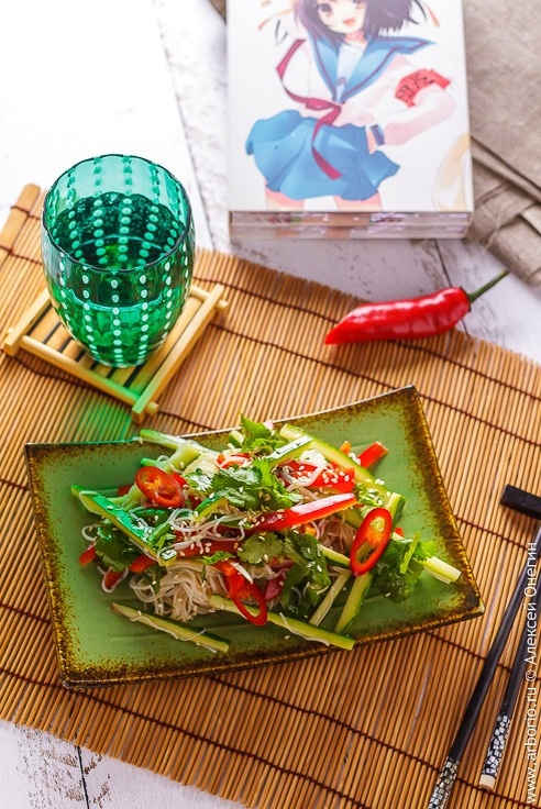 Этот салат можно подавать на работу, на пикник или как легкий ужин. Сочетание хрустящих овощей и деликатной лапши превращает его в настоящую находку для любителей простых, но вкусных блюд. Фунчоза не только поразит вас своим вкусом, но и украсит ваш стол яркими красками.